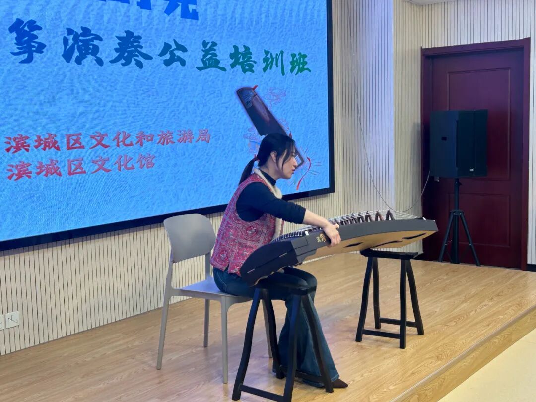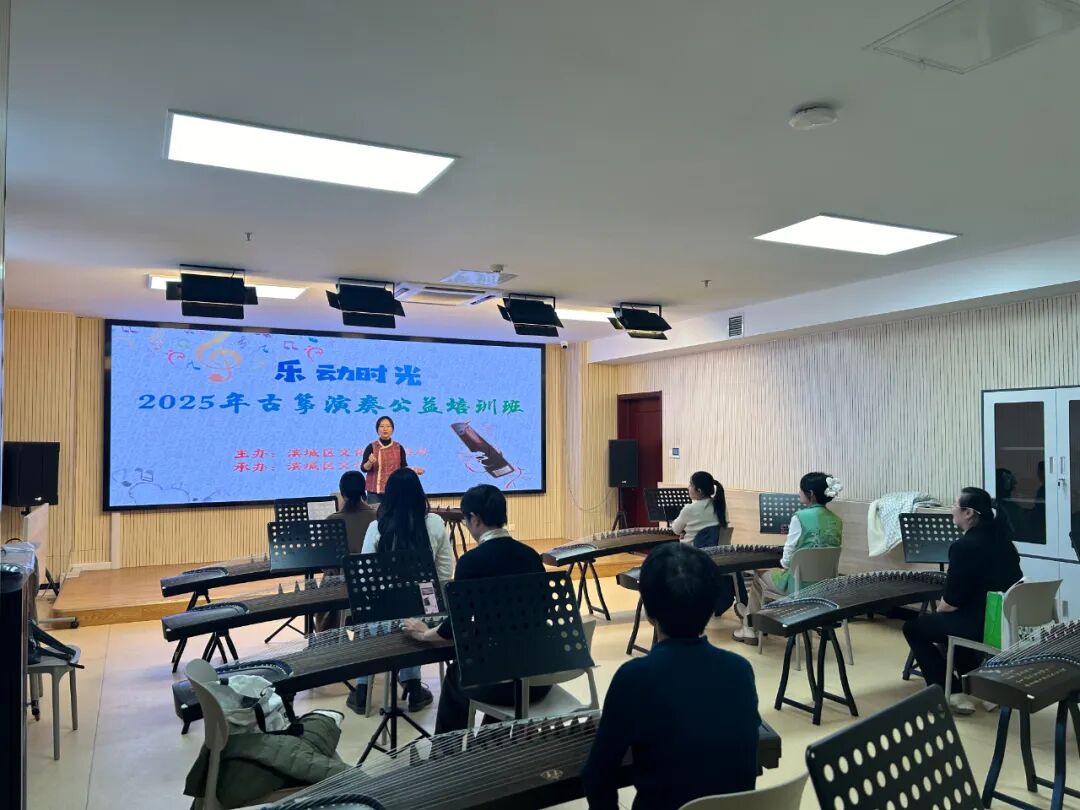 由滨城区文化和旅游局主办,滨城区文化馆承办的“乐动时光”2025年古筝演奏公益培训班今日开课。