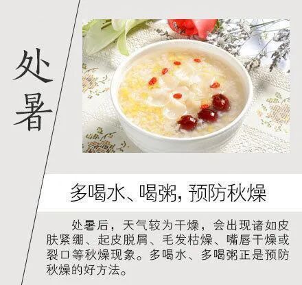 多吃清热安神食物 处暑之后,早晚温差变化开始明显,肠胃接受不了忽冷忽热的刺激,胃酸分泌增加,胃肠发生痉挛性收缩,抵抗力和适应性就会随之降低,这时候容易出现一些肠胃病,处暑节气适宜进食清热安神的食物,如银耳、百合、莲子、蜂蜜、黄鱼、干贝、海带、海蜇、芹菜、菠菜、糯米、芝麻、豆类及奶类,但这些食物一次进食不可太多,做到少食多餐。