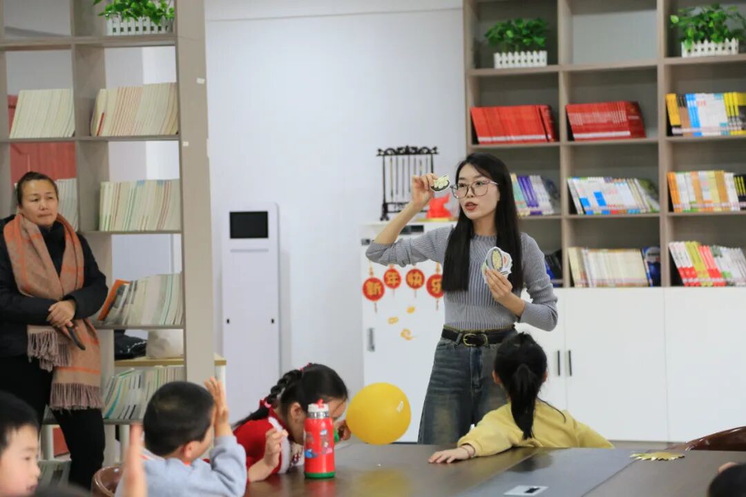 活动最后阮老师带小朋友学习了一段拜年吉祥话,为家里人带去新一年的美好祝福。下一步,我们将继续发挥文化阵地作用,弘扬中华优秀传统文化,开展内容丰富、形式多样的全民阅读活动。