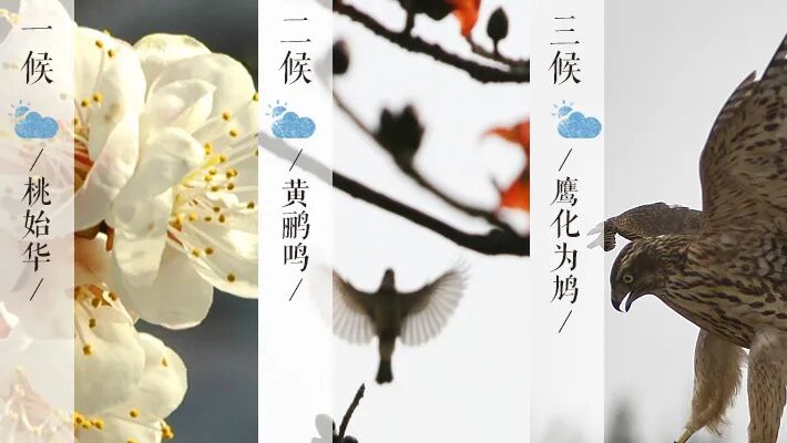 惊蛰分为三候:“一候桃始华;二候仓庚(黄鹂)鸣;三候鹰化为鸠。”描述已是进入仲春,桃花红、梨花白,黄莺鸣叫、燕飞来的时节。按照一般气候规律,惊蛰前后各地天气已开始转暖,雨水渐多,大部分地区都已进入了春耕。惊醒了蛰伏在泥土中冬眠的各种昆虫的时候,此时过冬的虫卵也要开始卵化。由此可见惊蛰是反映自然物候现象的一个节气。