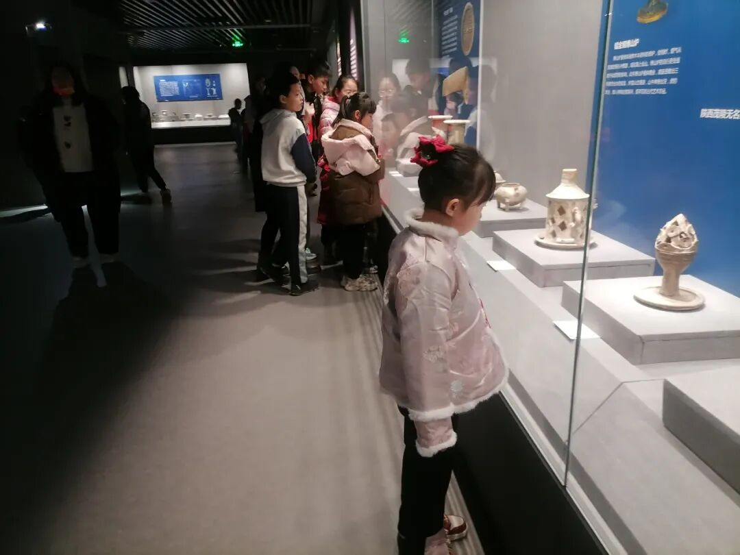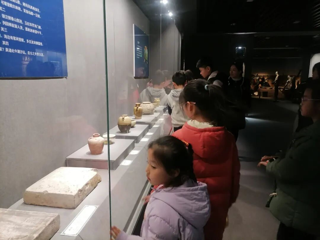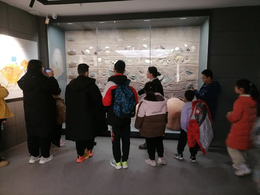 为了拓展知识面,加深孩子们对家乡历史文化的了解,观影结束后,滨城区博物馆组织孩子们参观了滨城区历史文化展厅。一进展厅内孩子们都无比兴奋,迫不及待地走到各个展柜前参观浏览,模拟的考古学地层文化墙、海边煮海为盐场景以及一件件珍贵的文物激发着孩子们的好奇心。在工作人员的讲解下,孩子们一边认真聆听一边参观学习,还时不时驻足凝视,若有所思。